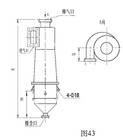 旋風除塵器由筒體、錐體、進氣管、排氣管等組成。其主要工作原理是基于離心力的作用;遵循流體力學基本規(guī)律,依靠分散相和連續(xù)相之間的相對運動來實現非均相混合物料的分離。旋風除塵器根據氣體在除塵器內的旋轉方向不同,由進口方向順時針旋轉的為右旋(S)和逆時針旋轉的為左旋(N)兩種。旋風除塵器的優(yōu)點是結構簡單,造價便宜,體積小,無運動部件,操作維修方便,壓力損失小,動力消耗;對于捕集、分離、回收5μm以上的粉末效率較高。旋風除塵器適用于工業(yè)通風除塵,工業(yè)氣體中物料的回收,也可用于氣體精細過濾預處理。旋風除塵器已被廣泛應用于化工、石油、冶金、建筑、礦山、電力、輕工等工業(yè)部門。 |